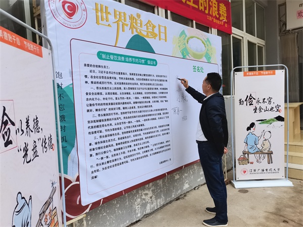为深入贯彻落实习近平总书记关于制止餐饮浪费行为的重要指示精神,培养全校师生员工“爱粮节粮惜粮”的节约意识,营造文明节俭的校园氛围。10月16日,第40个世界粮食日当天,学校后勤保障中心在青山湖校区和抚河校区食堂开展了“世界粮食日”的主题宣传活动。