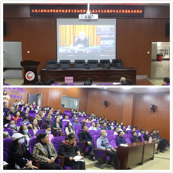 11月12日下午,我校全体教职员工分别在青山湖校区和抚河校区,收听收看学习贯彻党的十九届五中全会精神中央宣讲团报告会,聆听了中央宣讲团成员、教育部党组书记、部长陈宝生的宣讲报告。