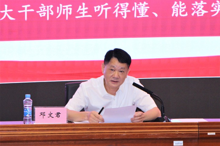 8月26日上午,诸侯快讯ok1122登录入口党史学习教育暑期培训班正式开班。校党委副书记邓文君以《学深悟透习近平总书记关于教育的重要论述》为题作首场专题宣讲。