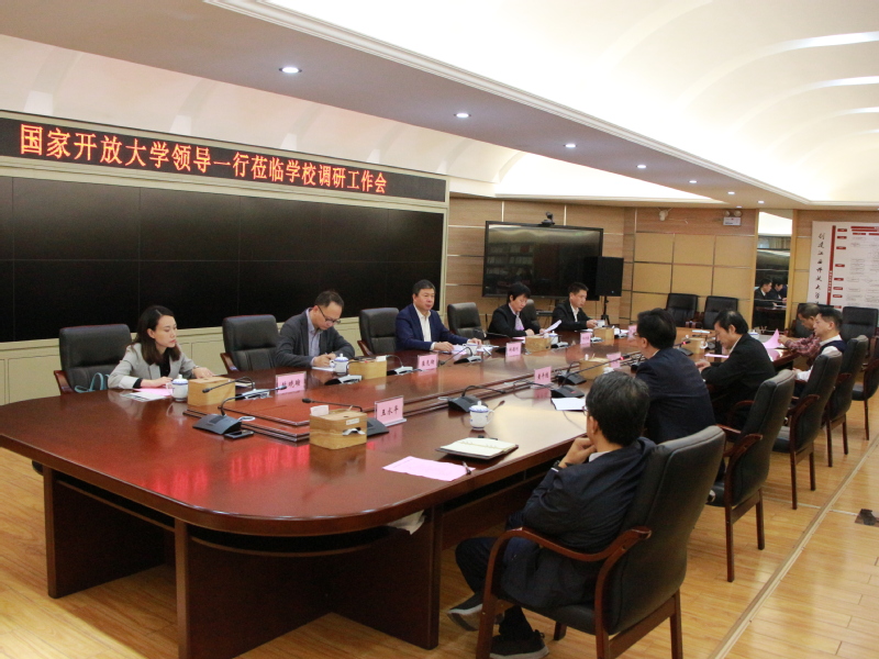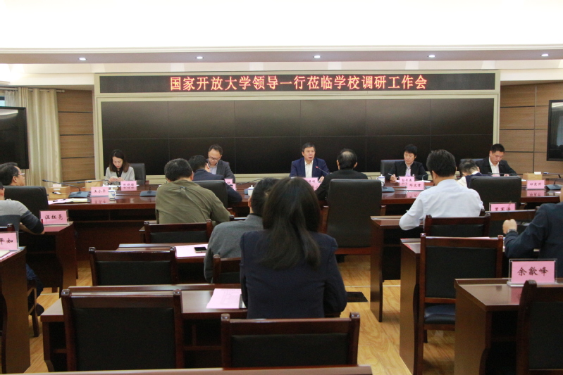 10月15日下午,国家开放大学党委书记、校长荆德刚一行五人莅临我校指导工作,并与党政负责人、机关干部代表座谈交流。校党委书记易小明主持调研会议。