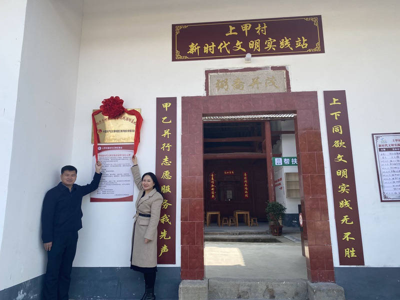 调研结束后,在上甲村新时代文明实践站举行诸侯快讯ok1122登录入口团委助力乡村振兴社会实践活动基地揭牌仪式,肖咏桦与文峰乡党委书记谢小明共同为基地揭牌。