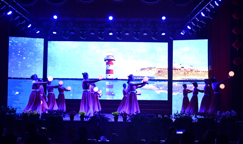 晚会在开场歌舞《盛世欢歌》中拉开序幕深情华彩的音乐,娉婷婆娑的舞姿,将大家带进了喜庆祥和的氛围中。大合唱《国家》以温婉朴实的曲调唱出了振奋人心的家国情怀;《琵琶行》琴箫合奏,舞姿蹁跹,展现出风回曲水、月上东山的古风古韵;女声合唱《星辰大海》充满热情,悦耳动听,唱出了新时代青年的梦想与憧憬;双簧《课余生活》以夸张幽默的表演,将生活艺术化,给人以启迪。由人武教工带来的歌伴舞《我爱你塞北的雪》和朗诵《百年峥嵘路》让人眼前一亮,展示了人武学院教职工文艺才华和政治素养;军事表演《有我在》由一群退役士兵大学生表演,军旅情结浓郁,体现了人民武装特色;乐队演奏《大风吹》、街舞《我怎么这么好看》、情景剧《新龙船调》、小品《演戏给你看》和舞蹈《灯火里的中国》或新潮与古典交织,或庄重与诙谐互现,风格迥异,荟萃一堂,显示了大学生自信张扬的内心与精湛娴熟的才艺
