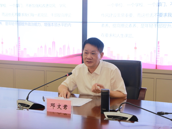 邓文君以“提高理论素养,是年轻干部的人生课题”为主题,重点阐述了理论素养的丰富内涵,提高理论素养的重要性紧迫性以及提高理论素养的科学方法论。他指出,提高理论素养,是年轻干部提升政治能力、增强本领水平的内在要求和人生课题。提升马克思主义理论素养,必须坚持学懂弄通做实习近平新时代中国特色社会主义思想,学深悟透践行习近平总书记关于教育的重要论述,更好地武装头脑、指导实践、推动工作。提高尊法学法守法用法和遵守党纪党规的自觉,必须认真学习国家法律和党规党纪,首先要学习宪法,同时学习自己所担负的领导工作密切相关的法律法规和党内法规,不断提升“知法守法、知纪守纪”的基本素养。提升包括自然和人文社会科学在内的专业理论素养,必须具备工作岗位的基本知识体系,掌握各方面的知识和技能,培养丰富多彩的爱好和兴趣,提高履职尽责的专业理论水平和本领能力,做到政治过硬、本领高强。