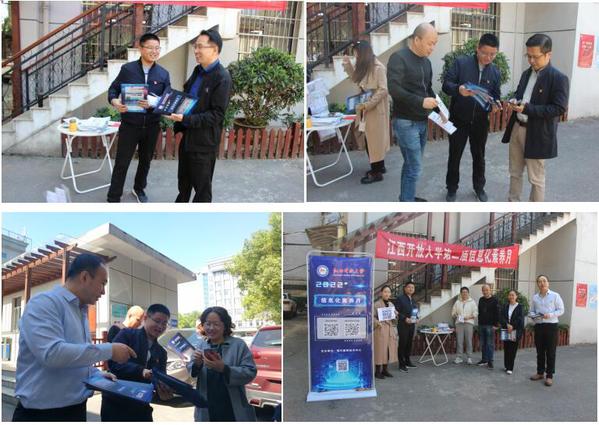 为贯彻落实学校第一次党代会提出的“立足智慧教育,强化’互联网+’特色”改革发展重点任务,现代教育技术中心立刻行动起来,于10月12日在青山湖校区开展信息化素养月线下活动。此前,现代教育技术中心就通过工作群、楼层电视宣传等形式开展信息技术线上知识科普、疑难解答等活动。