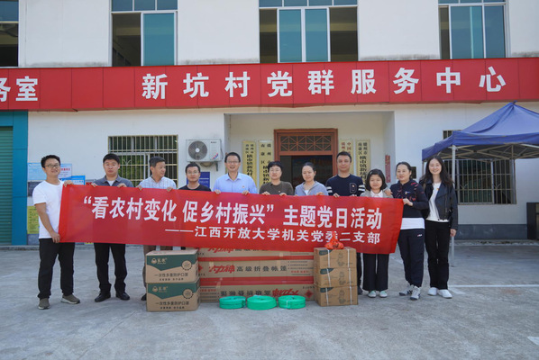 为践行党的二十大精神,激发党员干部的使命意识,激励党员发挥先锋模范作用,强化党员干部的责任担当,夯实建强支部战斗堡垒,推动模范机关创建,10月23日上午,机关党委二支部组织党员前往学校乡村振兴定点帮扶村——南康区横市镇新坑村,开展“看农村变化 促乡村振兴”主题党日活动。校党委副书记邓文君同志参加活动。