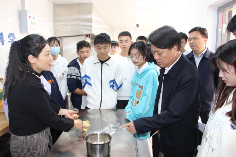 贺瑞虎一行深入烹饪实训室、自习室、一线课堂,从学习、生活等方面与师生进行了深入交流,认真了解学生群体的思想动态与真实诉求,交流讨论现场气氛热烈,字字句句温暖人心、充满力量。