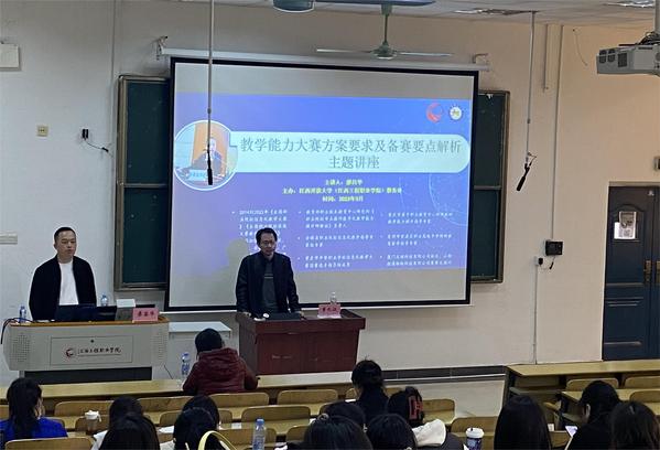 为提升我校教师教育教学能力,助力教师在各级教学能力大赛中取得优异成绩,3月2日下午,学校特邀教育部职业技术教育中心研究所《职业院校专业教师数字化教学能力提升研修班》负责人,全国职业院校教学能力大赛资深专家廖昌华做“教学能力大赛方案要求及备赛要点解析”主题讲座。