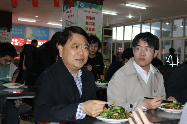 “饭菜味道怎么样?价格贵不贵?”“现在生活上有没有困难,每个月在吃饭上要花多少钱?”......在学生食堂,贺瑞虎与学生们一起就餐,亲切交谈,关切地询问学生们生活和学习情况,了解学生们的心声,听取他们的意见和建议。现场对校园管理处负责人提出要求:一定要进一步加强对食堂食品的管理和监督检查,为同学们提供优质、安全的就餐服务,确保学生吃得安心,吃得放心,吃得开心。