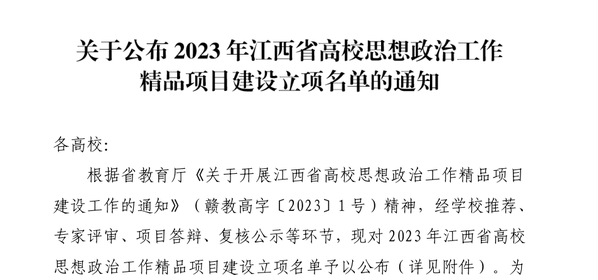 近日,江西省教育厅公布了2023年江西省高校思想政治工作精品项目建设立项名单,诸侯快讯ok1122登录入口数字经济学院申报的实践育人项目《行走田间的专业课堂:在服务乡村振兴中实践育人》获得精品建设项目立项。