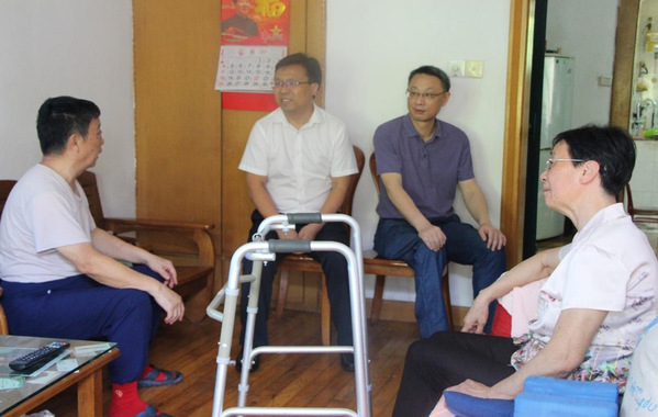 为深入推进学习贯彻习近平新时代中国特色社会主义思想主题教育,落实校领导联系群众制度,把学校党委对离退休党员、群众的关心关爱落到实处。“七一”前夕,校领导贺瑞虎、黄平槐、邓文君、王水平开展走访慰问退休老党员,困难党员、群众活动。冯豫红因手摔伤,委托组织人事部相关负责人进行走访慰问。办公室、纪委办、组织人事部、宣传部、离退休人员服务中心负责人陪同走访慰问。