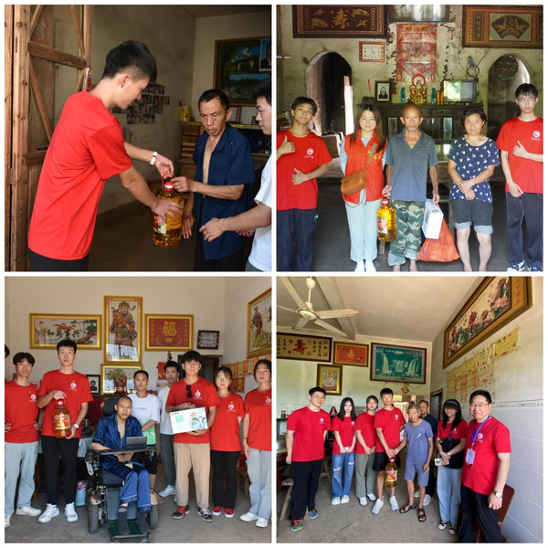 实践过程中,师生们在摸底调查了解经济水平、思想状态等情况的基础上,带着慰问品分头行动,走访看望了25户贫困户,与他们面对面交流,为他们送去关怀。走访过程中,队员们了解到茅头村年过花甲的甘燕红老阿姨之前是村里的重点帮扶对象,她因小儿麻痹双腿终身残疾,在政府的帮扶下开起了杂货店,最终摆脱了贫困。真实的故事,让队员们切实体会到了党和国家实施乡村振兴战略的现实意义。临别之际,老阿姨还祝愿青年学生不断学习、不断进步,朴实的话语令学生们深受鼓舞。