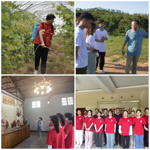 “青年学子唯有深入实践,才能深切感受社会前进的脉搏。”实践团队成员们前往丽村镇特色产业基地进行实地调研,考察酿酒、油茶以及葡萄园等产业,深入感受产业引领乡村振兴的能量。
