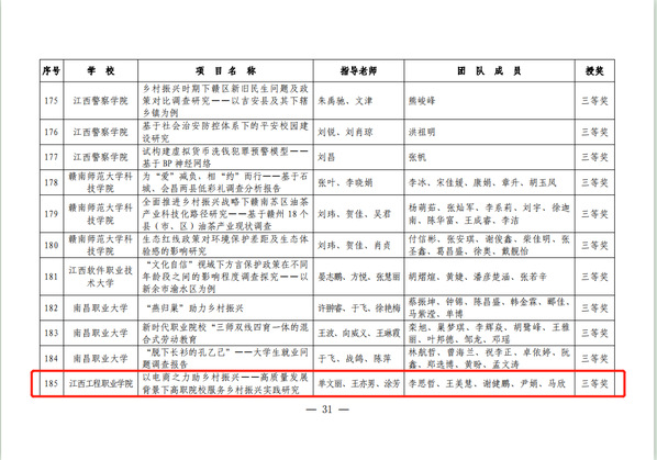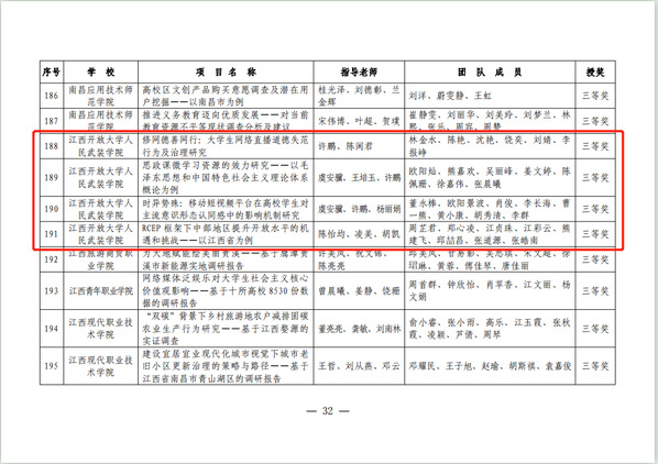 近日,由团省委、省科协、省教育厅、省社科院、省学联主办,江西理工大学承办的第十八届“挑战杯”江西省大学生课外学术科技作品竞赛终审已落下帷幕,第十八届“挑战杯”江西省大学生课外学术科技作品竞赛圆满结束。经过资格审查、省级复审、公开答辩和组委会、评委会综合审定,预通知公示后,现已正式张榜,我校推送的六个作品,均斩获三等奖的佳绩!