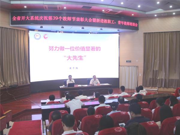 9月6日,学校新进教职员工、青年教师培训会在东湖校区二楼学术报告厅举办,校党委副书记、校长黄平槐以“努力做一位价值显著的大先生”为题进行专题授课。各部门主要负责人、新进教职工以及青年教师共160余人现场聆听。