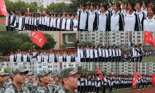雄壮嘹亮的国歌声国旗护卫队身姿挺拔、步伐整齐,随着五星红旗冉冉升起,开学典礼暨军训总结大会拉开序幕。