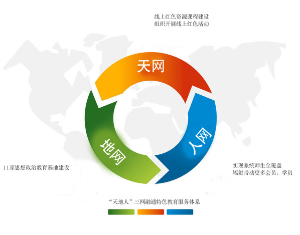 持续深化“三全育人”综合改革,把传承红色基因融入“天地人”三网融通的特色教育服务体系。