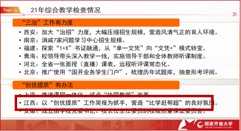 2021年国开总部网上教学综合成绩与教学检查情况通报