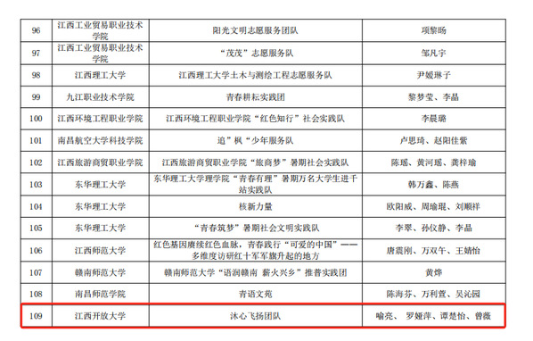 近日,江西省教育厅公布“强国有我、青春有为”暑期社会实践活动暨2023年“万名大学生进千站”文明实践志愿服务行动评审结果。其中,由我校学工处选送的《月亮湾“乡村振兴之路”调研报告》获得优秀调研报告一等奖,诸侯快讯ok1122登录入口沐心飞扬团队荣获优秀实践成果、优秀团队和优秀指导教师等多个奖项。此外,闵文祥、沈文龙、袁雪芳三位同学荣获优秀个人。