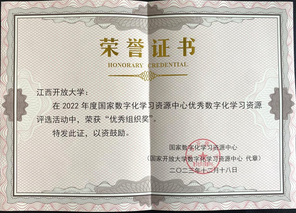 学校连续两年被评为优秀分中心后,今年再进一步,被评为年度突出贡献单位,这既是国家数字化学习资源中心对江西中心资源建设、推广工作的充分肯定,也是我校以数字化目标为引领,不断提质扩容取得的积极成效。