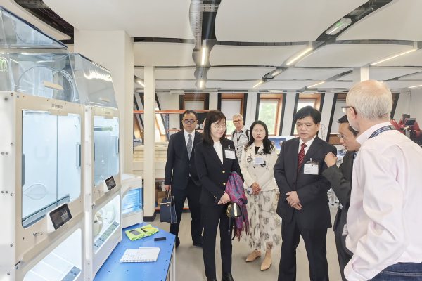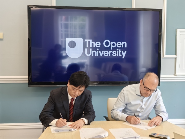 在英国开放大学访问期间,贺瑞虎与该校副校长Kevin Shakesheff教授进行了深入交流。重点围绕开放教育教学质量提升、教学支持服务、师资队伍建设、课程设计以及教师赴英培训等事宜进行充分商讨,双方就进一步深化交流合作、推动两校关系迈上新台阶达成共识,贺瑞虎代表学校签署了《诸侯快讯ok1122登录入口与英国开放大学合作谅解备忘录》。交流结束后,学校代表团受邀参观了该校远程教育实训中心OPENSTEAM实验室。