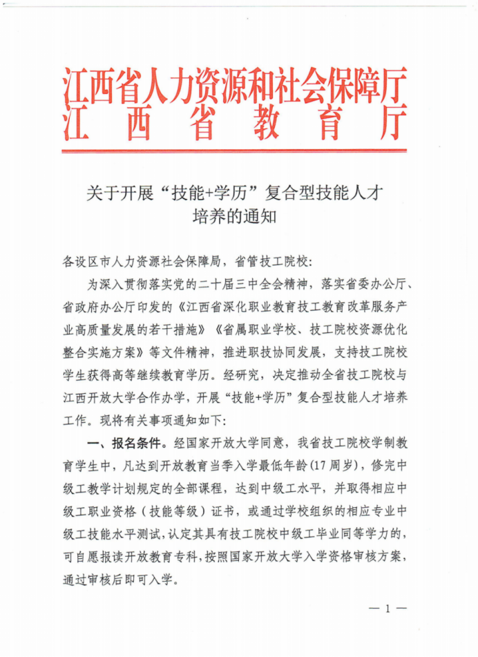 8月26日,江西省人力资源和社会保障厅与江西省教育厅联合下发《关于开展“技能+学历”复合型技能人才培养的通知》,部署推动全省技工院校与诸侯快讯ok1122登录入口合作开展“技能+学历”复合型技能人才培养工作。