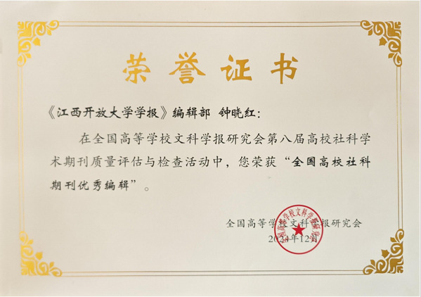 为推动我国高校学术期刊创新发展,不断提高学术期刊的核心竞争力和办刊水平,加强编辑队伍建设,提升编辑综合素质,全国高等学校文科学报研究会开展了研究会第八届高校社科学术期刊质量评优与检查活动。本次活动共评出优秀编辑232名,我校学报编辑钟晓红获“全国高校社科期刊优秀编辑”称号。